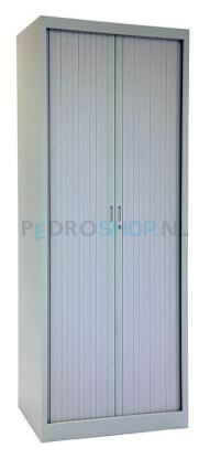 Dit is de roldeurkast PDC-195-80. Deze kast is 195 cm hoog, 80 cm breed en 45 cm diep. De PDC-195-80 roldeurkast kent een volledig gelaste constructie. De roldeuren zijn geproduceerd van vlamdovend PVC en zijn voorzien van een stalen eindlamel. De kast is afgewerkt met een krasvaste poedercoating.