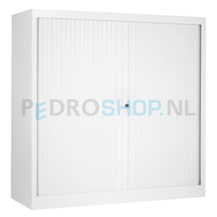 Dit is de roldeurkast PDC-120-120. Deze kast is 120 cm hoog, 120 cm breed en 45 cm diep. De PDC-120-120 roldeurkast kent een volledig gelaste constructie. De roldeuren zijn geproduceerd van vlamdovend PVC en zijn voorzien van een stalen eindlamel. De kast is afgewerkt met een krasvaste poedercoating.