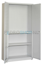 Het paneel bovenin de kast is voorzien van perforatie voor opslag van gereedschappen. Haken voor in het geperforeerde paneel worden helaas niet meegeleverd.