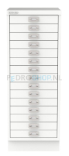 Meerladenkast Bisley -15, A4 formaat, 15 laden, wit, incl. sokkel