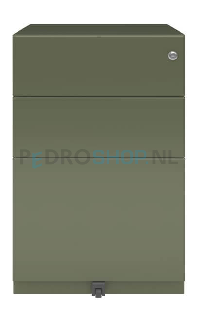 Ladenblok Bisley Basic met 3 laden, 65,2 cm hoog, 42 cm breed, olijfgroen, 80% uittrekbaar