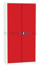 Deze draaideurkast is geheel na eigen wens samen te stellen. De draaideurkast kent voor de deuren de kleurcode: Rood ral 3020 en voor de ombouw: Wit ral 9010.