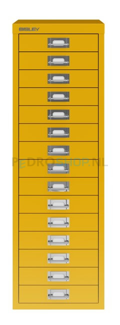 Meerladenkast Bisley -15, A4 formaat, 15 laden, geel