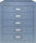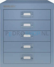 Meerladenkast Bisley-5, A4 formaat, 5 laden, handgreep gekleurd, blauw