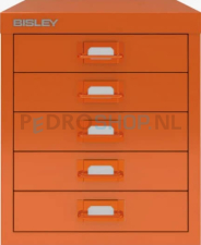 Meerladenkast Bisley-5, A4 formaat, 5 laden, handgreep gekleurd, oranje