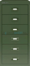 Meerladenkast Bisley -6, A4 formaat, 6 laden, handgreep gekleurd, olijfgroen