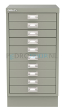 Meerladenkast Bisley -10, A4 formaat, 10 laden, betongrijs, incl. sokkel