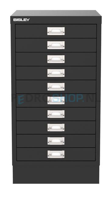 Deze Bisley 10 laden meerladenkast wordt geleverd op een sokkel. De kleur van de sokkel is zwart.