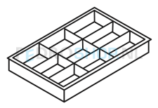 Naast een 9-vaks inzetbakken kennen we ook de formaten 4, 16, 24 en 35 vaks.