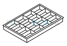 Deze inzetbak kent 16 gelijke vakken. De inzetbakken worden per set van 5 stuks verkocht. Deze 16-vaks inzetbakken kennen een hoogte van 5,1 cm en zijn geschikt voor de Bisley A4 meerladenkasten met lade hoogten 5,1 cm, 8,7 cm en 10,2 cm.