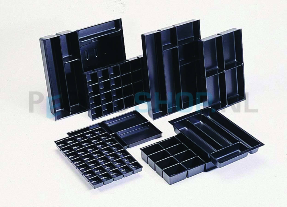 Maakt u bijvoorbeeld gebruik van klein materiaal? Dan zijn inzetbakken een uitkomst. Door de inzetbakken blijft materiaal in de daarvoor bestemde ruimte.
