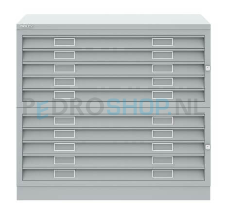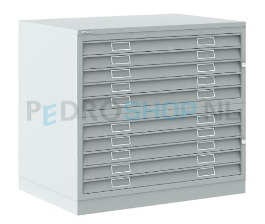Tekeningkast Bisley A110, A1 formaat, 10 laden, zilvergrijs